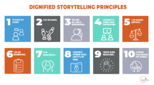 Welcome to the Dignified Storytelling blog. With an objective to safeguard human dignity in storytelling, through our blog we strive to bring you inspiring stories from around the world, the latest insights and news updates to keep you informed about dignified storytelling. We hope you enjoy the blog content. We are constantly looking to improve it, so please leave us your feedback through the Contact section and also let us know what stories you would like to see included in the blog. We also encourage you to use the social share buttons at the end of each blog post, to share your favorite stories on your own social media, to help spread the word about telling stories with human dignity at heart.